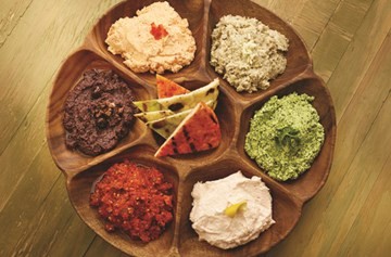 roasted red peppers, marinated mushrooms, imported seafood salad and octopus salad,<br>